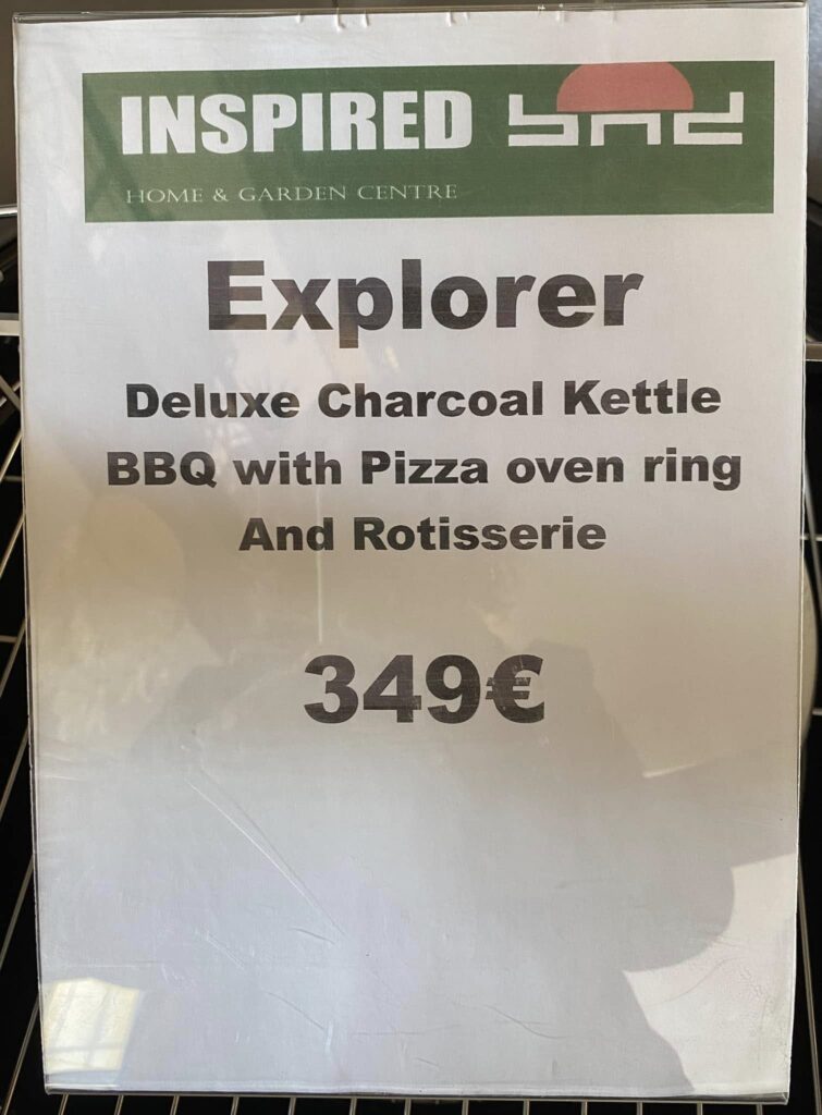 We have been very kindly donated this lovely Deluxe Kettle BBQ with Rotisserie & Pizza ring along with a large bag of Charcoal by Inspired Home & Garden with a combined value of 369€